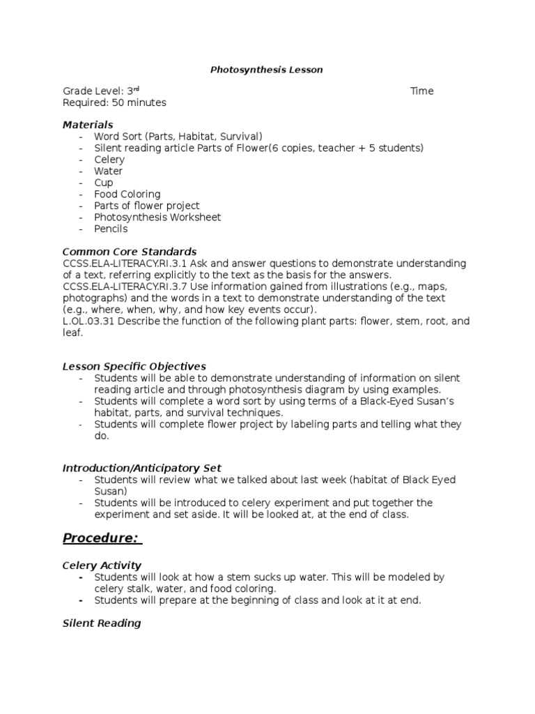 lesson plan format third grade thematic unit3 Flowers Special Education