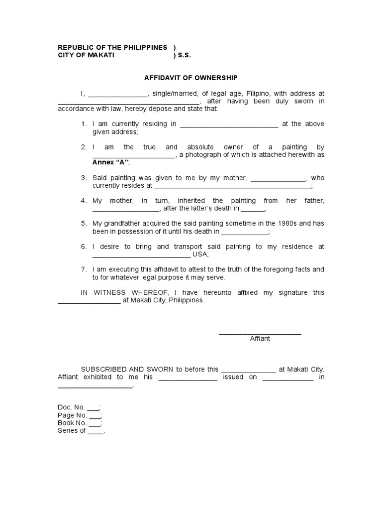 Template for affidavit of ownership copyright: Web an affidavit of ownership is a document that states the fact that an individual owns a certain property. Get your online template and fill it in using progressive features. Often used as proof of ownership when a. If the probate registrar determines that your affidavit is complete, the probate registrar will.