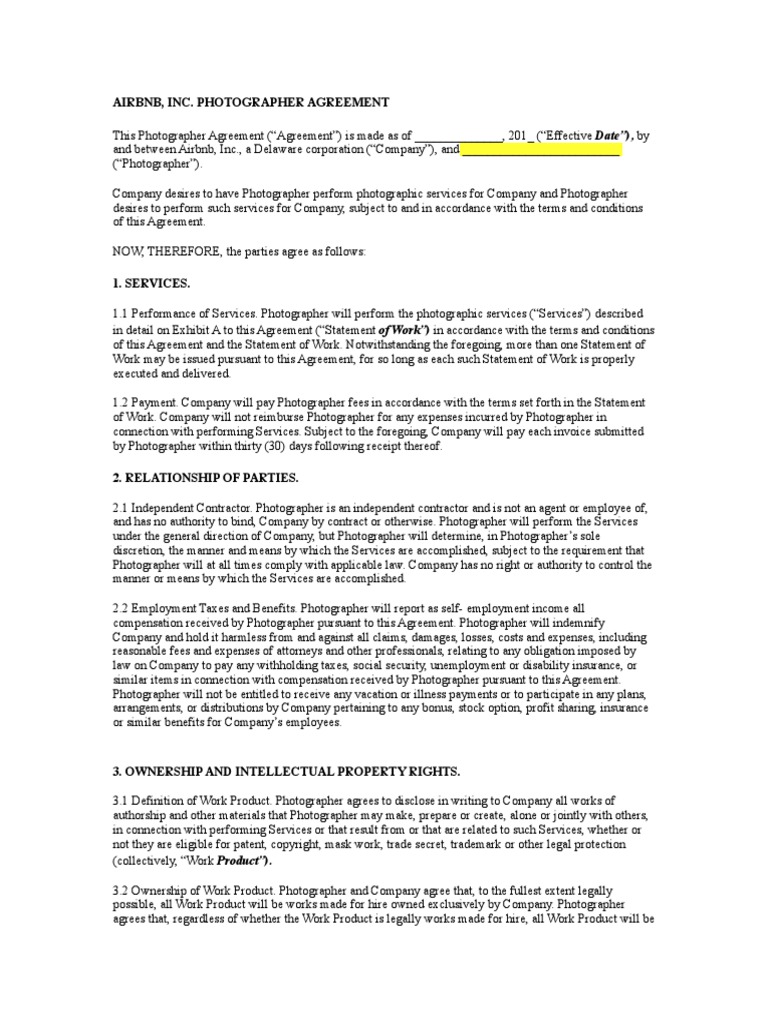 Airbnb Photographer Agreement Intellectual Property Trade Secret