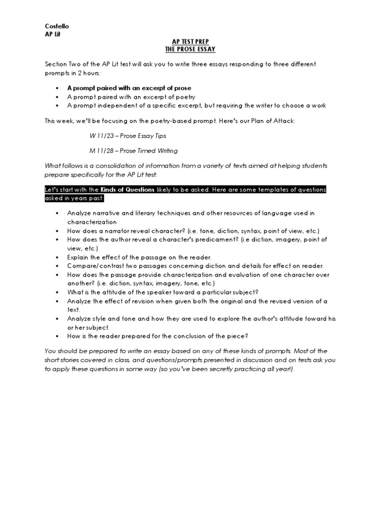 How To Write Ap Lit Prose Essay Akehurst Scribble