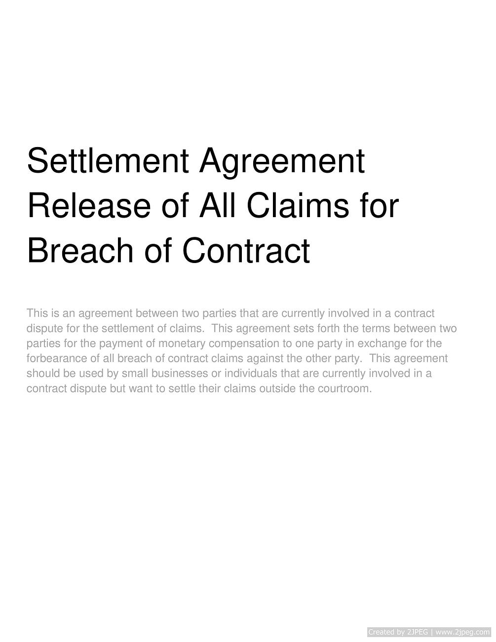 Read these documents with an eye. Or that the civil division of the. Web breach of contract and settlement. Rich text instant download buy now free preview description this form is a full, final and absolute release. A settlement agreement is a legally binding contract document that shows evidence of parties agreeing to certain terms.