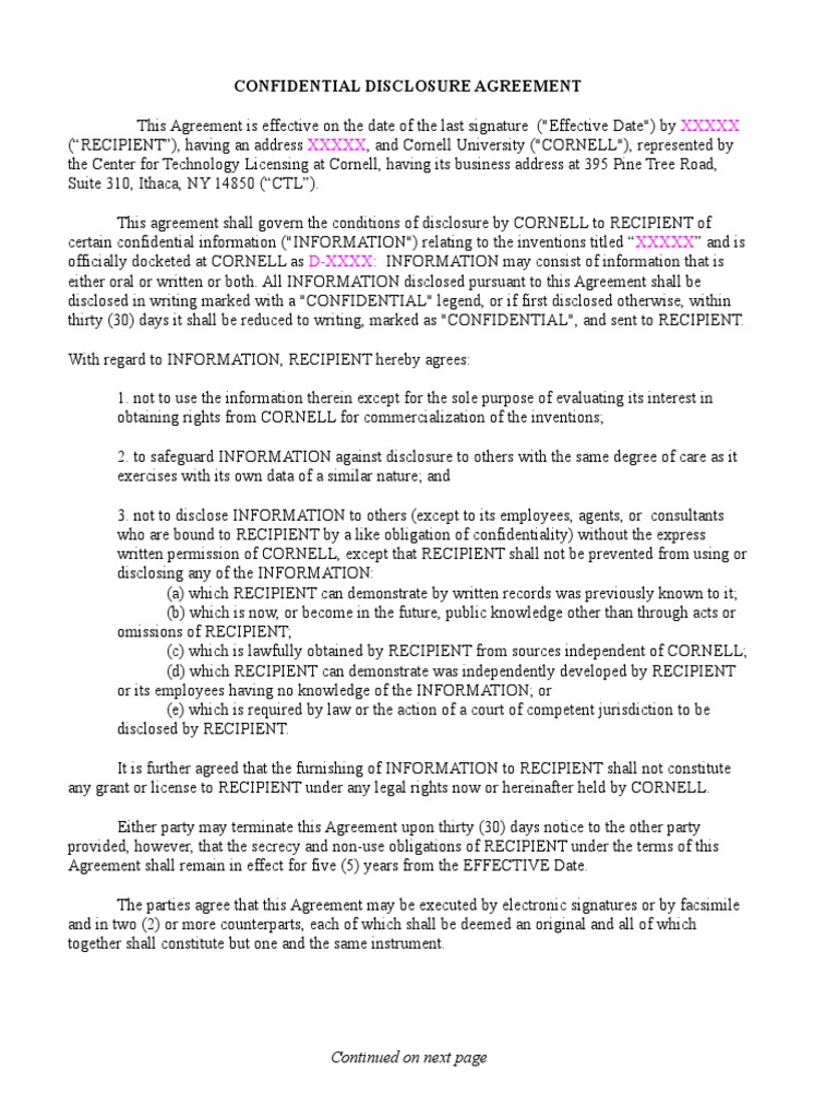 Web up to $3 cash back download now of 2 confidential disclosure agreement this agreement is effective on the date of the last signature (effective date) by xxxxx. Web this confidential disclosure agreement (this “agreement”) is entered into as of __________________ (the “effective date”) by and between president and fellows of. Web an nda, also known as a confidential disclosure.