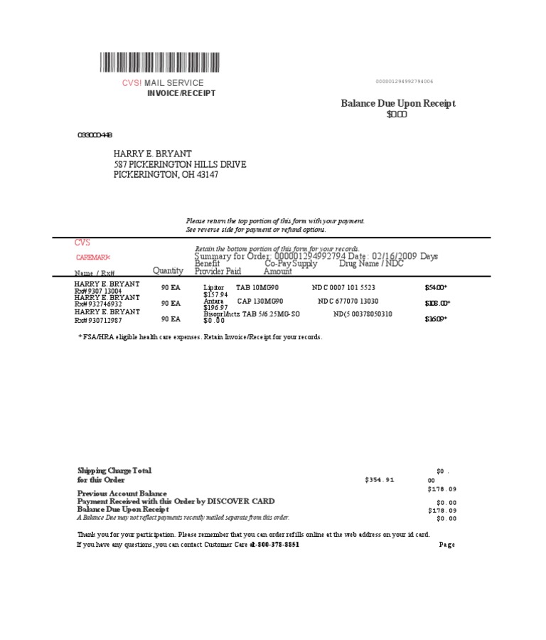 Cvs! Mail Service Invoice/Receipt Receipt Services (Economics)