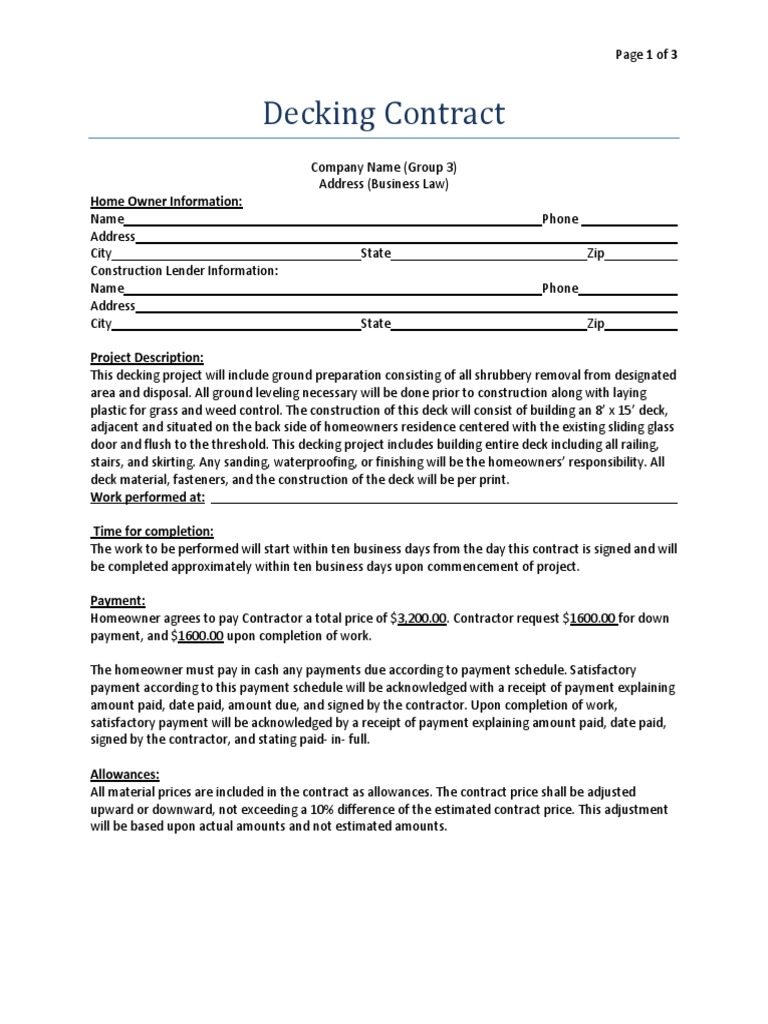 Decking Contract Business Law Project Fee Home Insurance Free 30