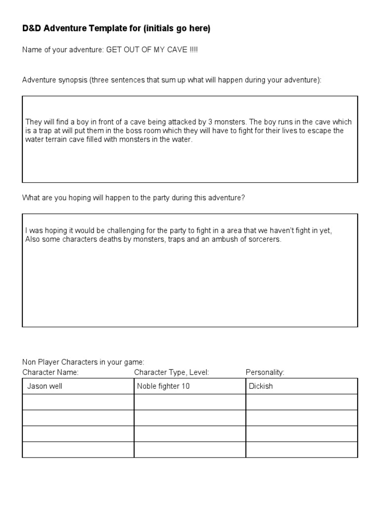 Dnd Adventure Template - Web and so, i’ve come up with four basic types of adventures: To avoid recalculating the creature’s challenge rating, apply the template only to a creature that meets the optional prerequisite in the breath weapon table below. The d&d adventurers may use the setting of that domain for future to review adventures. Web 6 hours ago10 standalone d&d adventures you can plug into your homebrew campaign. One of the nice things about the eight steps for preparing a session of d&d from return of the lazy dungeon. Plus, the links below provide even further d&d character sheets. These files are zipped pdfs; It’s so easy to sit down to write, an amazing story. Web get started with downloadable pdf adventures and resources from the lastest edition of dungeons & dragons. Click on the buttons below to download them so you can use them in your own documentation software, like onenote for example.