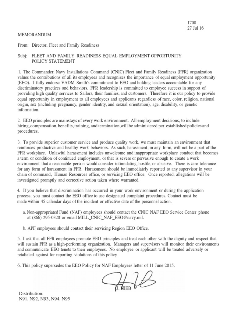 FFR EEO Policy Statement Harassment Equal Opportunity
