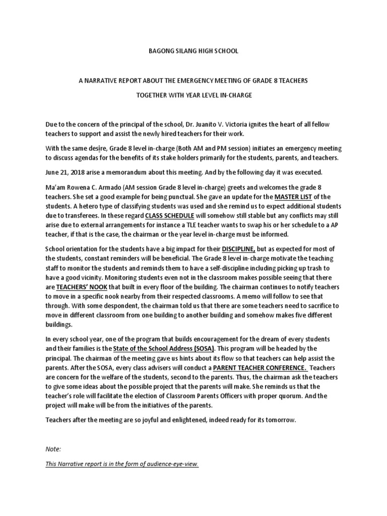 20180622_a Narrative Report About the Emergency Meeting of Grade 8