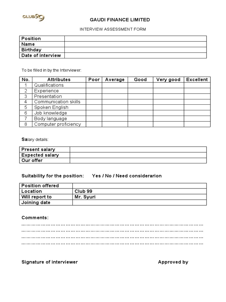FREE 14+ Sample Interview Assessment Forms in PDF Word XLS