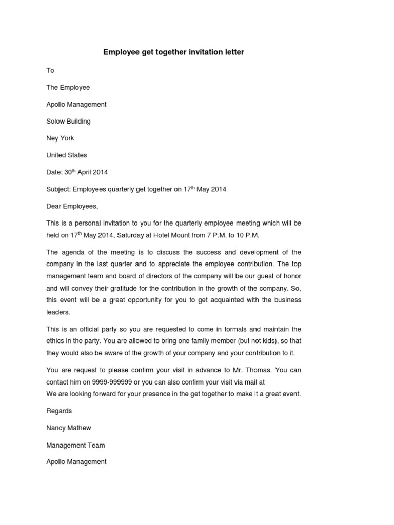Employee Get Together Invitation Letter Template