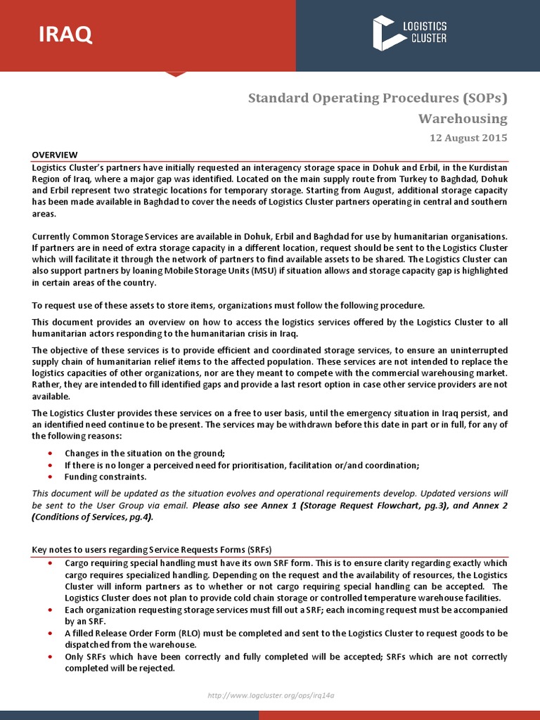 Logistics Cluster SOP Logistics Warehouse