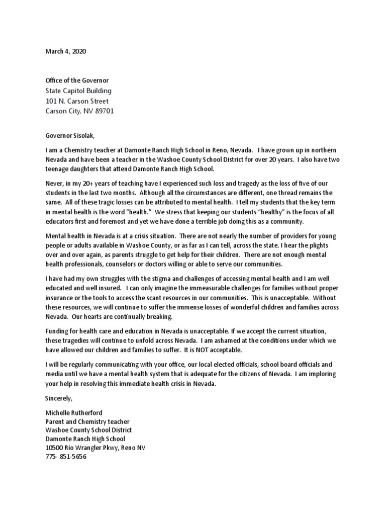 Mental Health help letter to Governor Sisolak