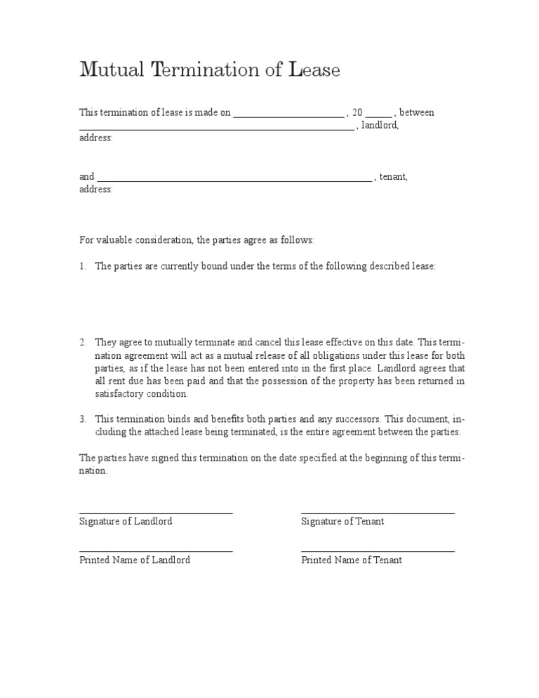 Mutual Lease Termination Agreement Template Fill Online, Printable
