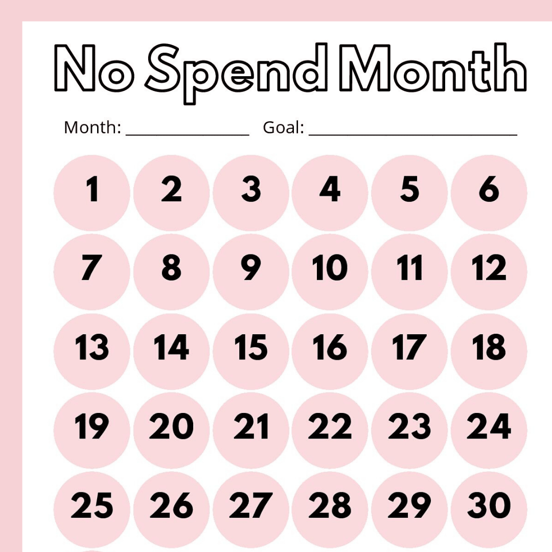 Print & enjoy this FREE printable nospend month calendarfor any and