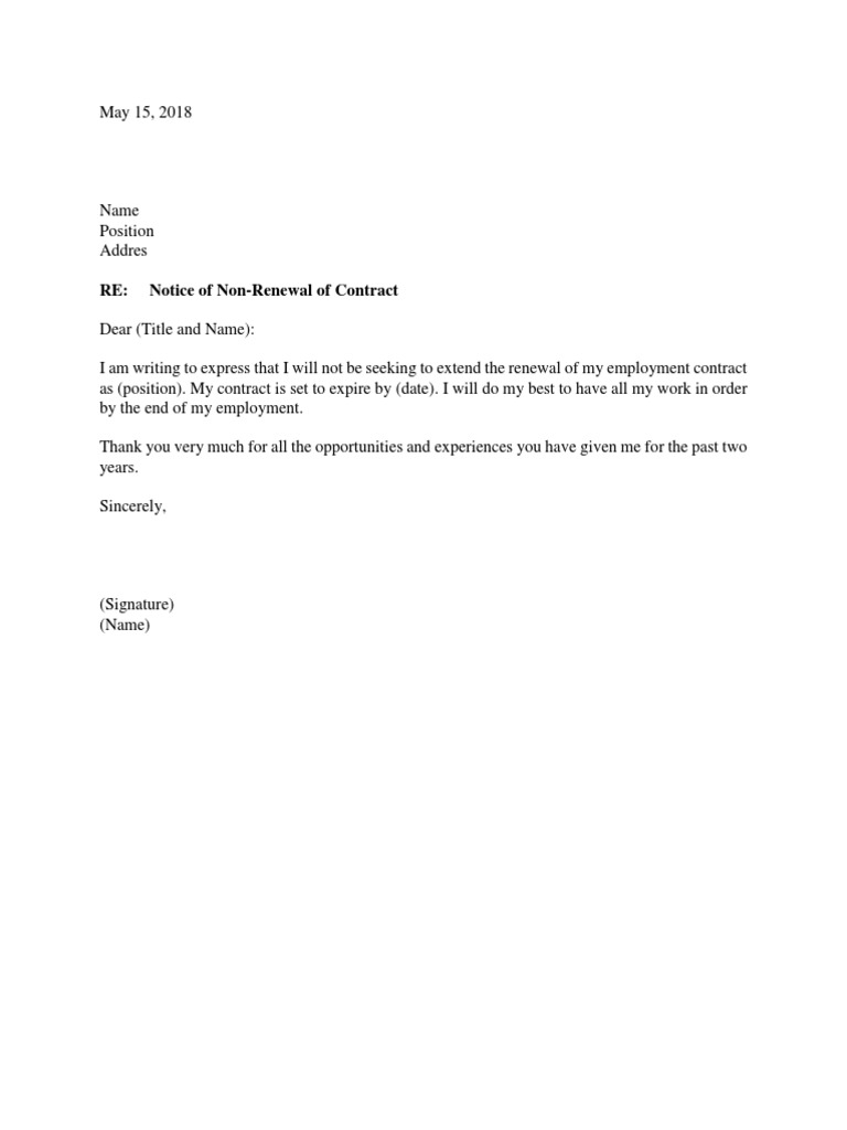How Do I Write A Non Renew Contract Letter Darrin Kenney's Templates