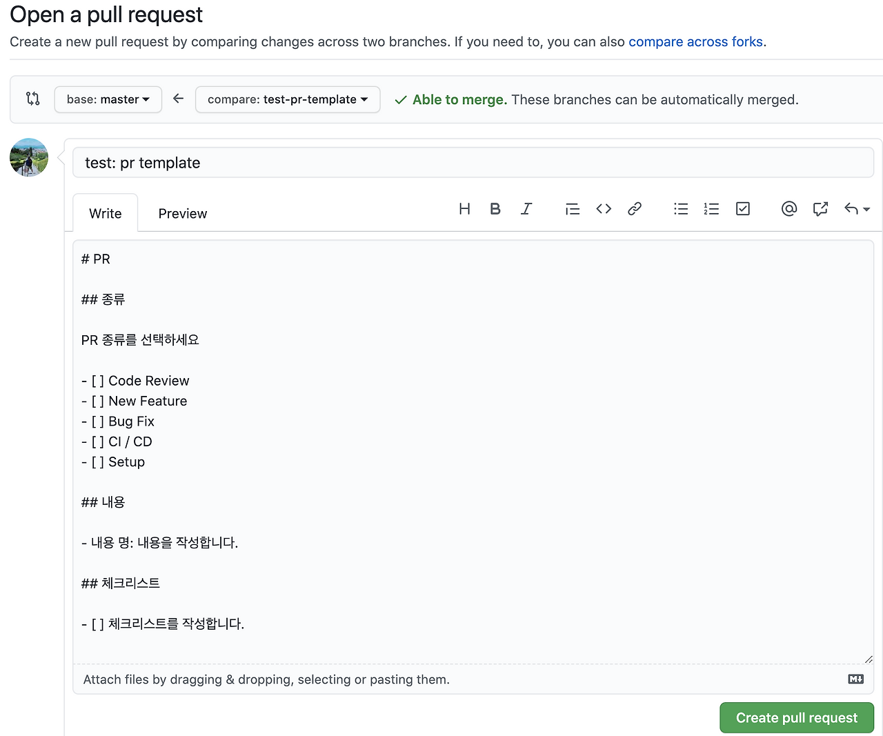 프로젝트에 Github PR, Issue Template 적용하기 개발 여행