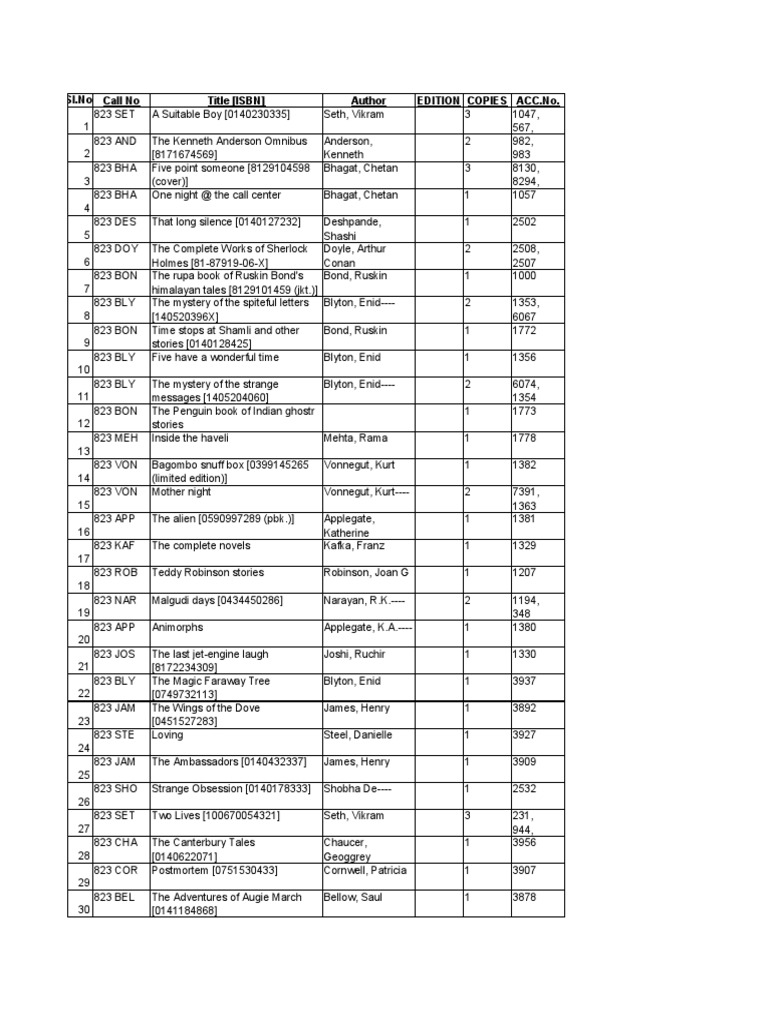 Printable Book Lists By Author