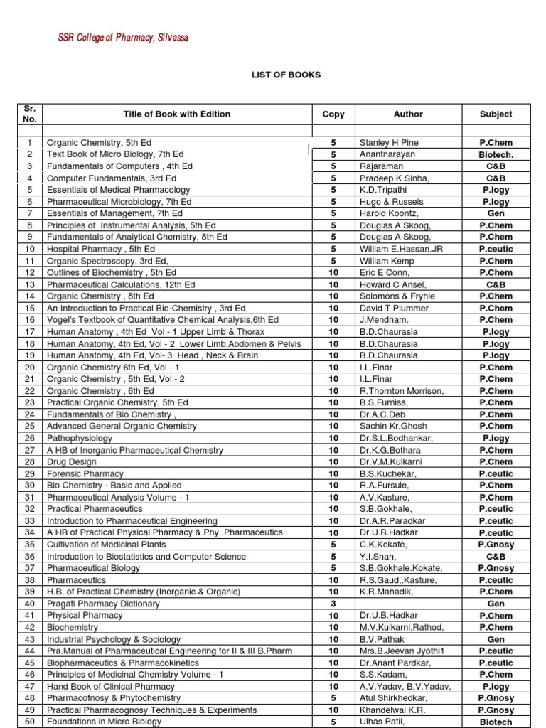 List of Books