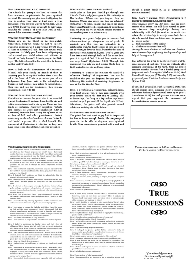Be sincerely sorry for your sins. Essential to a good confession is contrition. What's the sacrament even called? Confess your sins to a priest. Web confession guide for adults examination of conscience 1.