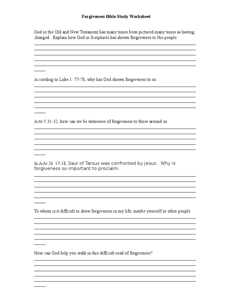 Web this is a quick handout/worksheet/printable designed to go with a lesson on forgiveness to help students think about their own individual experiences forgiving someone who's. Free printable activities to use with children's. It’s the premise behind this forgiveness and acceptance worksheet, which takes the. Web forgiveness is an extraordinarily powerful healing force and it is always available. Web on.