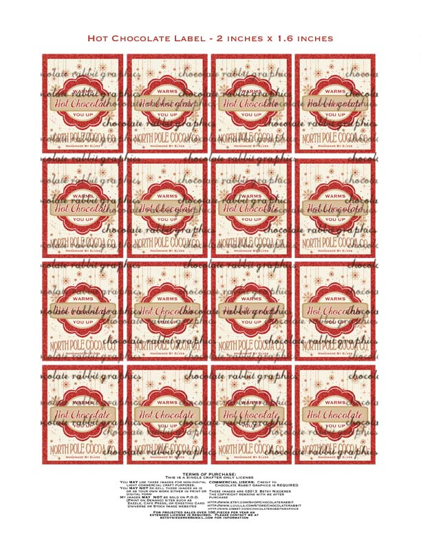 Printable Hot Cocoa Chocolate Labels Digital Download Vintage Style