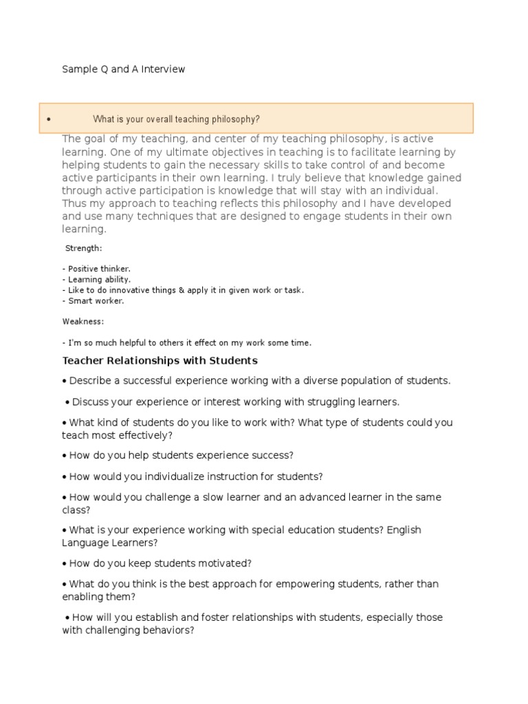 Sample Interview Q and A Special Education Learning