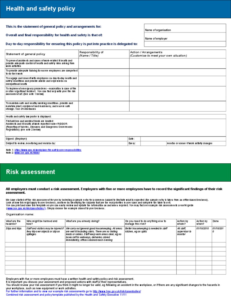 Risk Assessment and Policy Template PDF Occupational Safety And