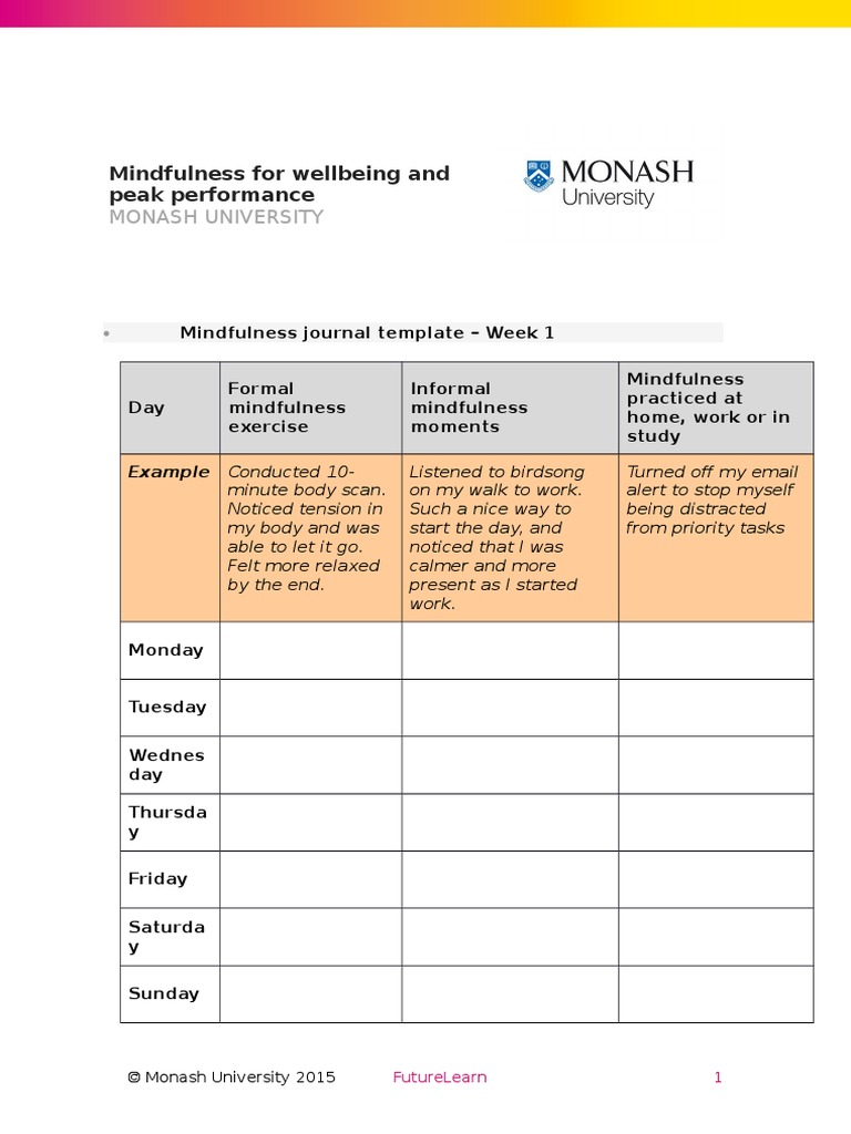 Mindfulness Journal Template Mindfulness SelfImprovement