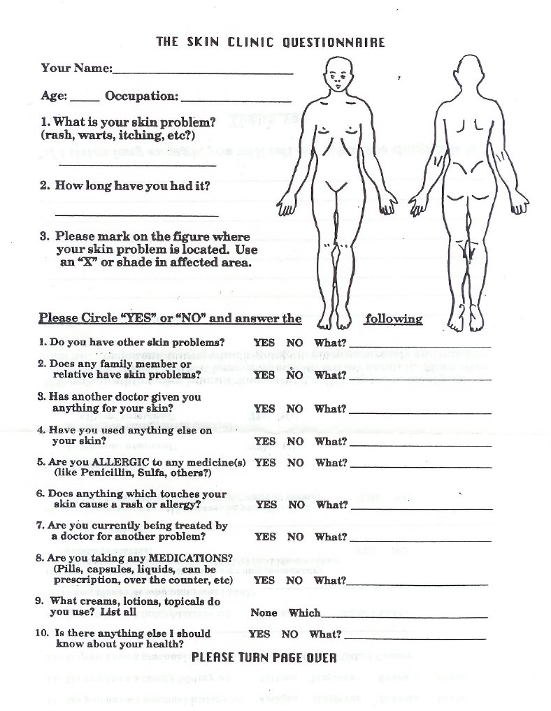 Skin Clinic Patient Questionnaire Skin Medicine Free 30day Trial