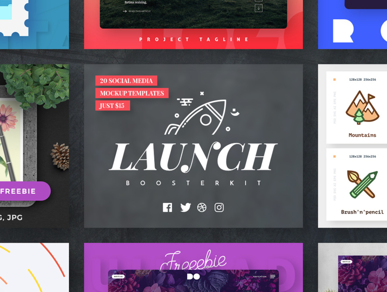 一组易于使用的社交媒体模型模板,Launch Booster Kit NicePSD 优质设计素材下载站