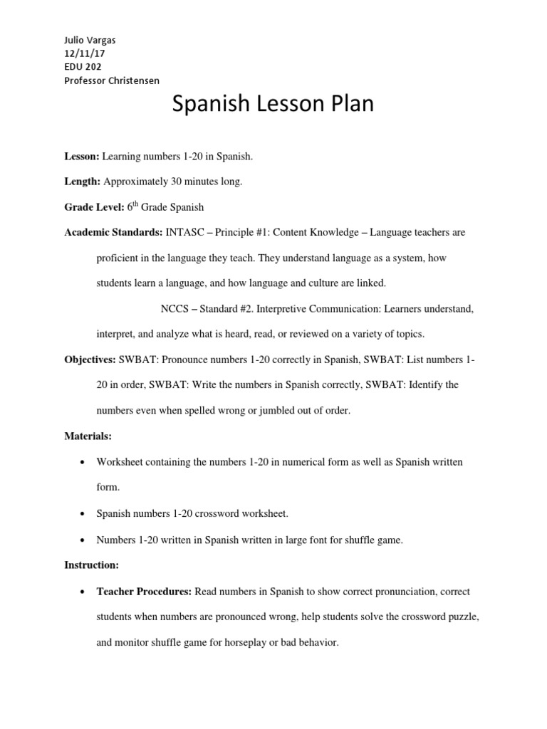 Lesson Plan Template For Spanish Class Master of Documents