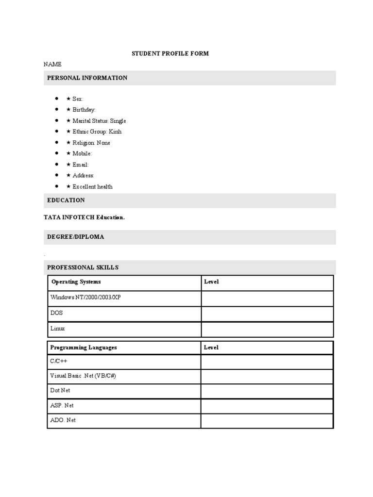 Student Profile Form 2 Free Templates in PDF, Word, Excel Download