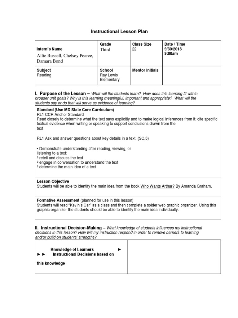 TEAM Sample Lesson Plan Educational Assessment Teachers