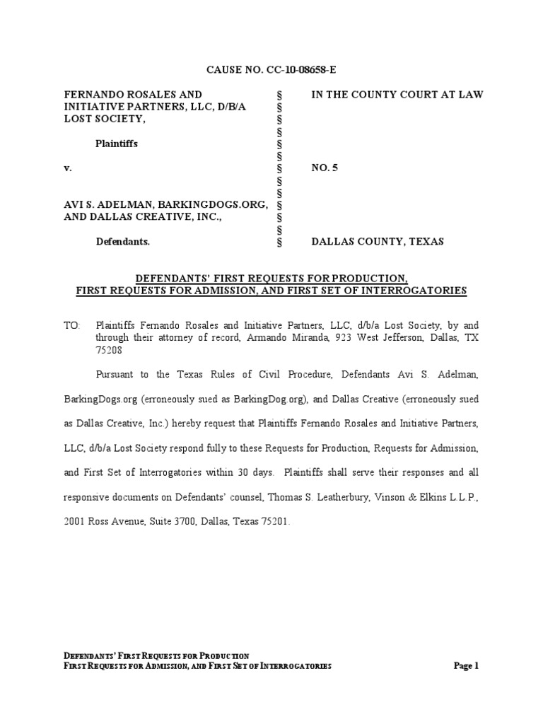 Adelman First Discovery Requests Discovery (Law) Interrogatories
