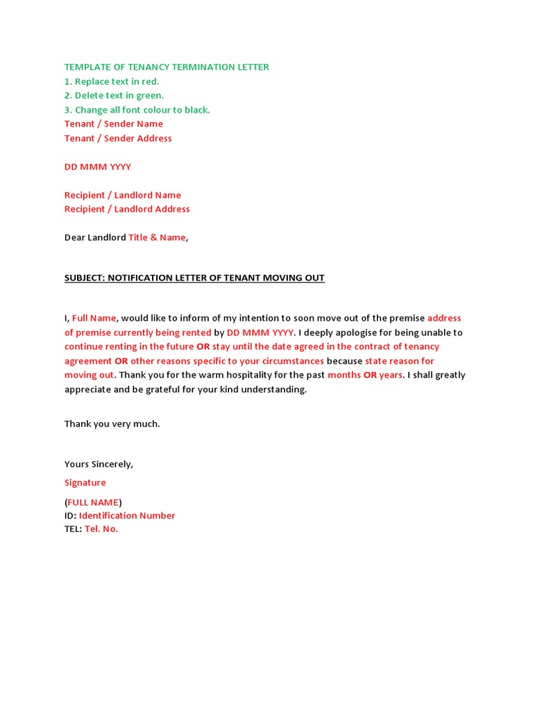 Tenancy Termination Letter Template