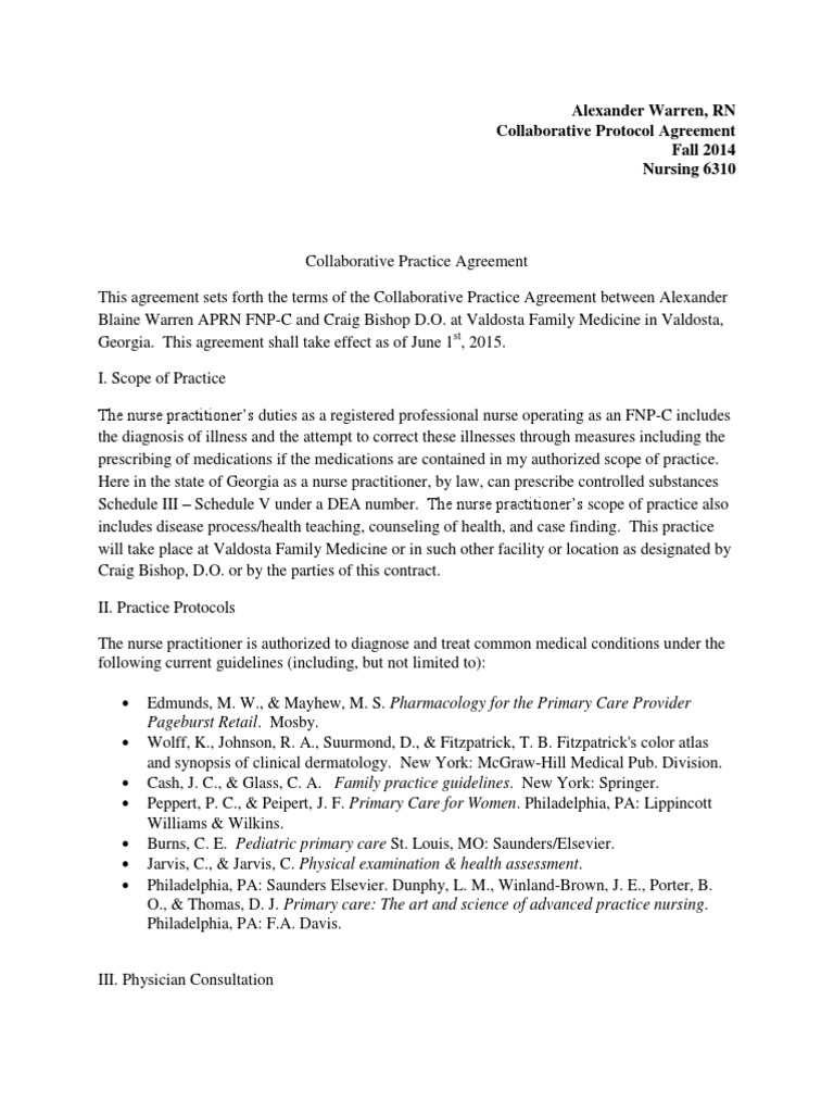 Web collaborative practice agreement |last updated 1/12/2016 siloam family health center. Web a collaborative practice agreement is a written statement that defines the joint practice of a physician and an apn in a collaborative and complementary working relationship. Web collaborative practice agreement for nurse practitioner (sample) a. Purpose the purpose of this document is to describe the scope of practice.