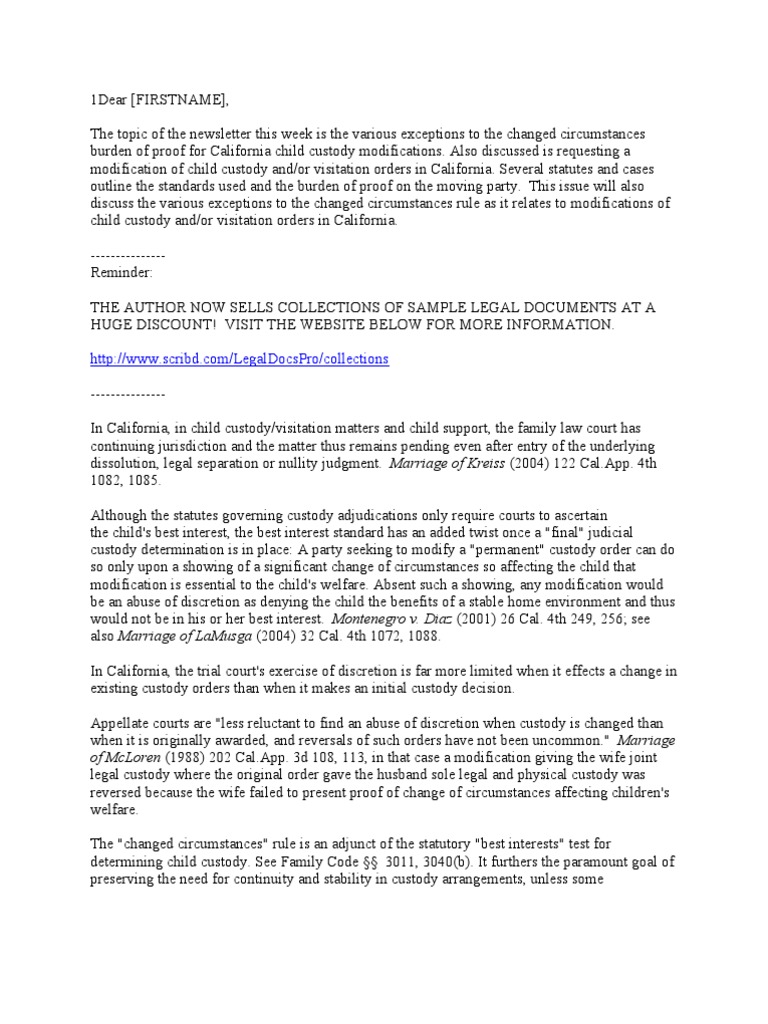 California Child Custody and Visitation Modifications Supreme Court