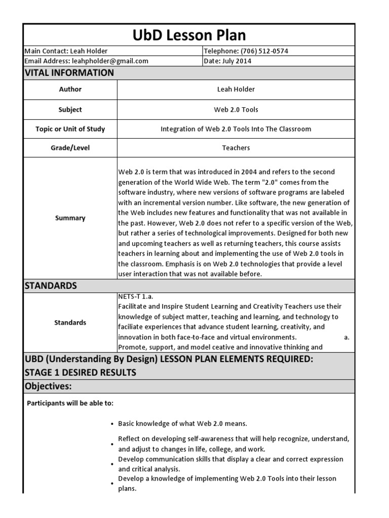 UbD Lesson Plan Template Laura Leopold Professional Portfolio
