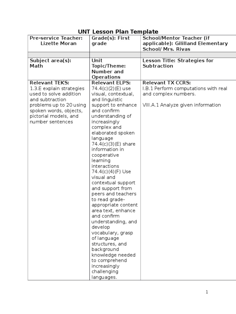 unt lesson plan 1 Lesson Plan Educational Assessment