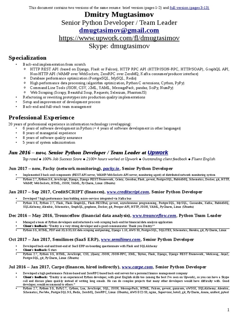 Dmugtasimov Resume Upwork Selenium (Software) Software Development