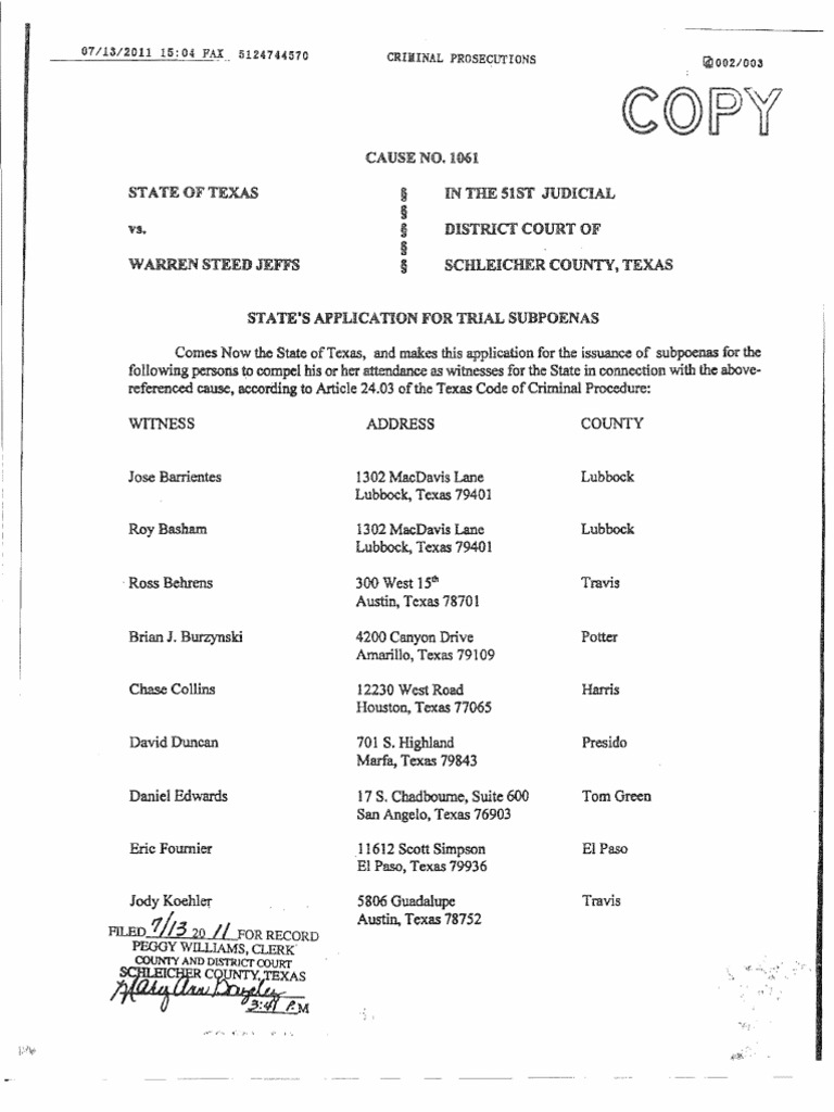 State of Texas Witness List 3