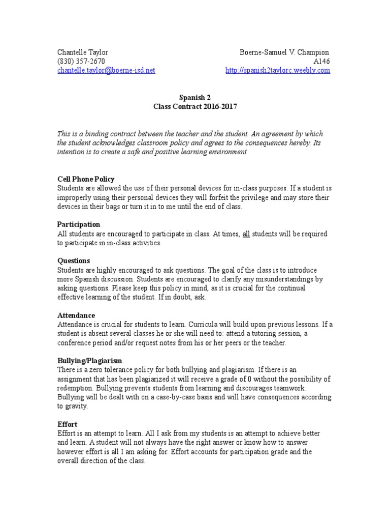 class contract Lesson Plan Teaching
