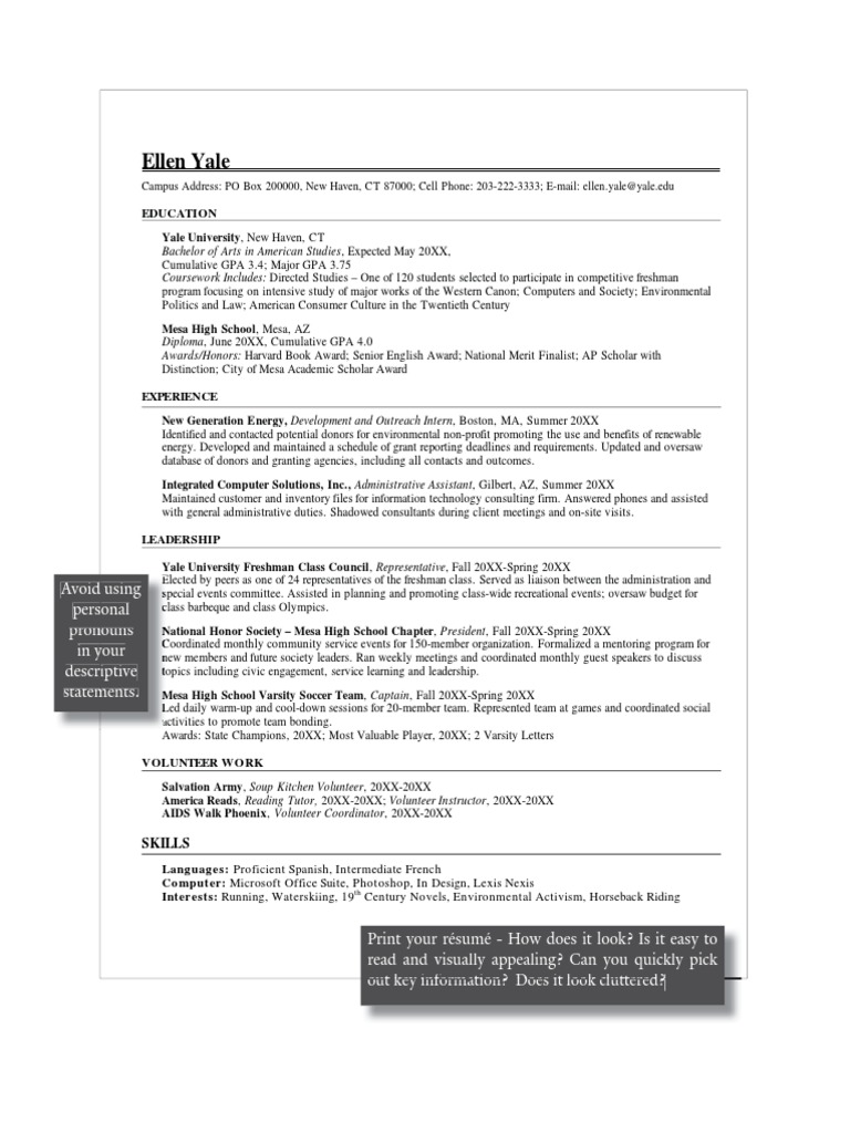 Yale College Student Recent Graduate Resumes Yale University