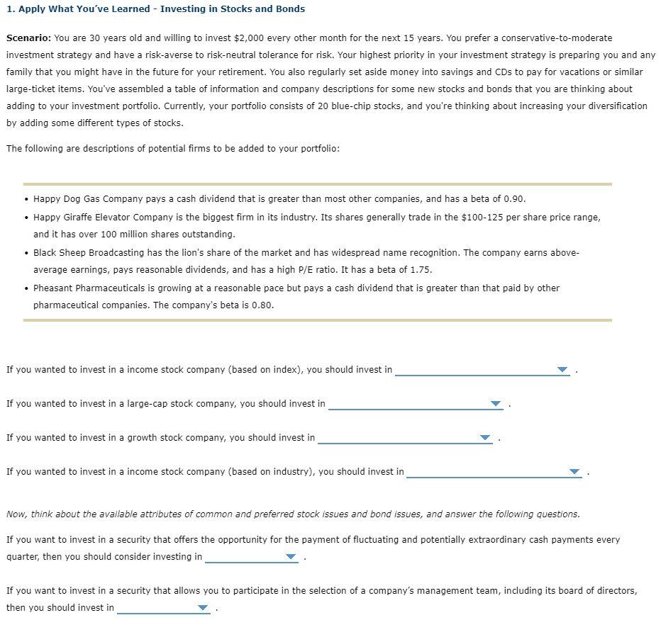 Solved 1. Apply What You've Learned Investing in Stocks